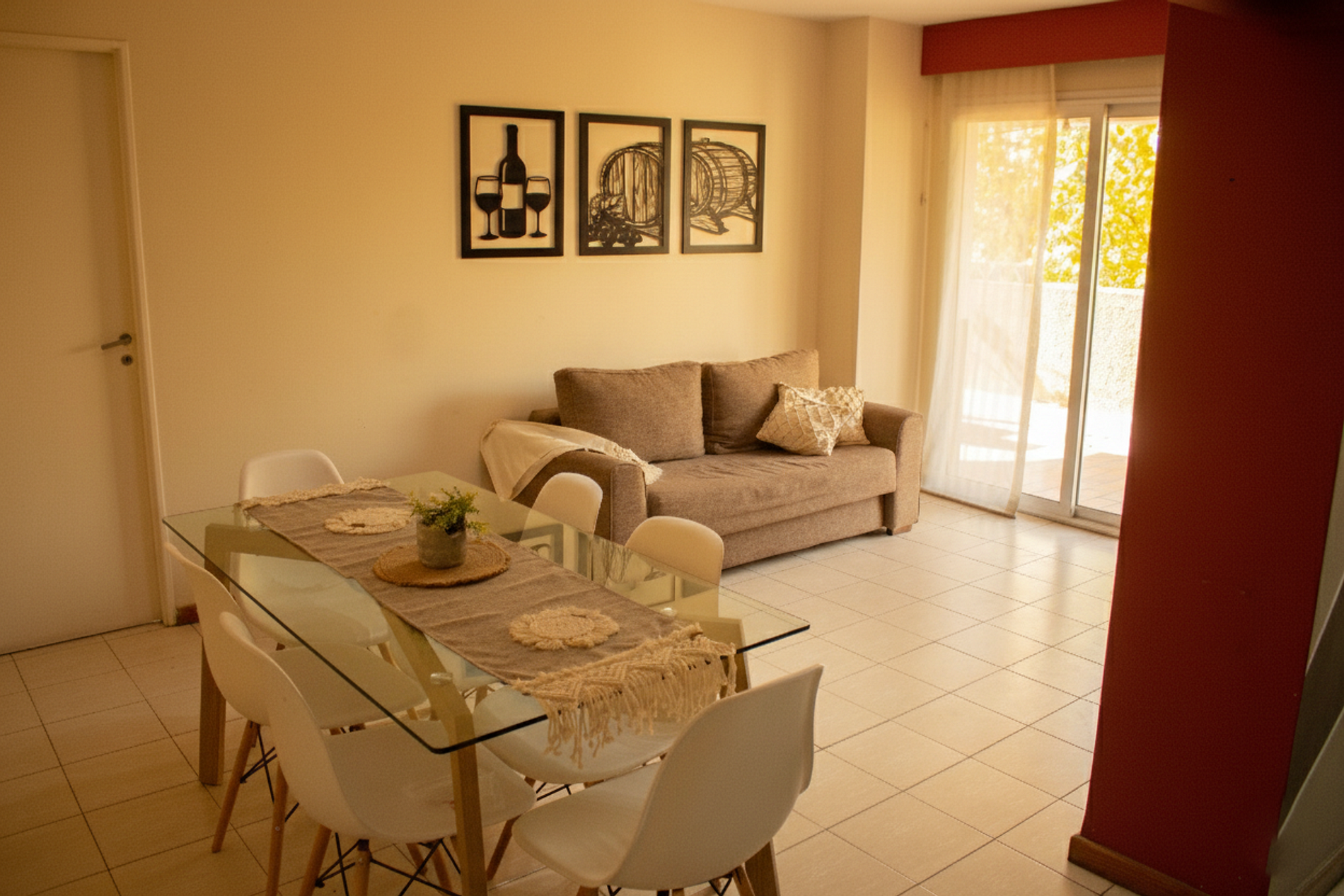 Departamento amplio, moderno y muy bien ubicado. Tiene una terraza privada de 70 m² con parrilla y muebles de exterior, algo difícil de encontrar en pleno centro. Cuenta con WiFi de alta velocidad, aire acondicionado, calefacción, cocina completa, smart TV, lavarropas y dos dormitorios. Pet friendly. Incluye desayuno seco.(cafe, te y yerba)A metros de la peatonal, la terminal y Plaza Independencia.