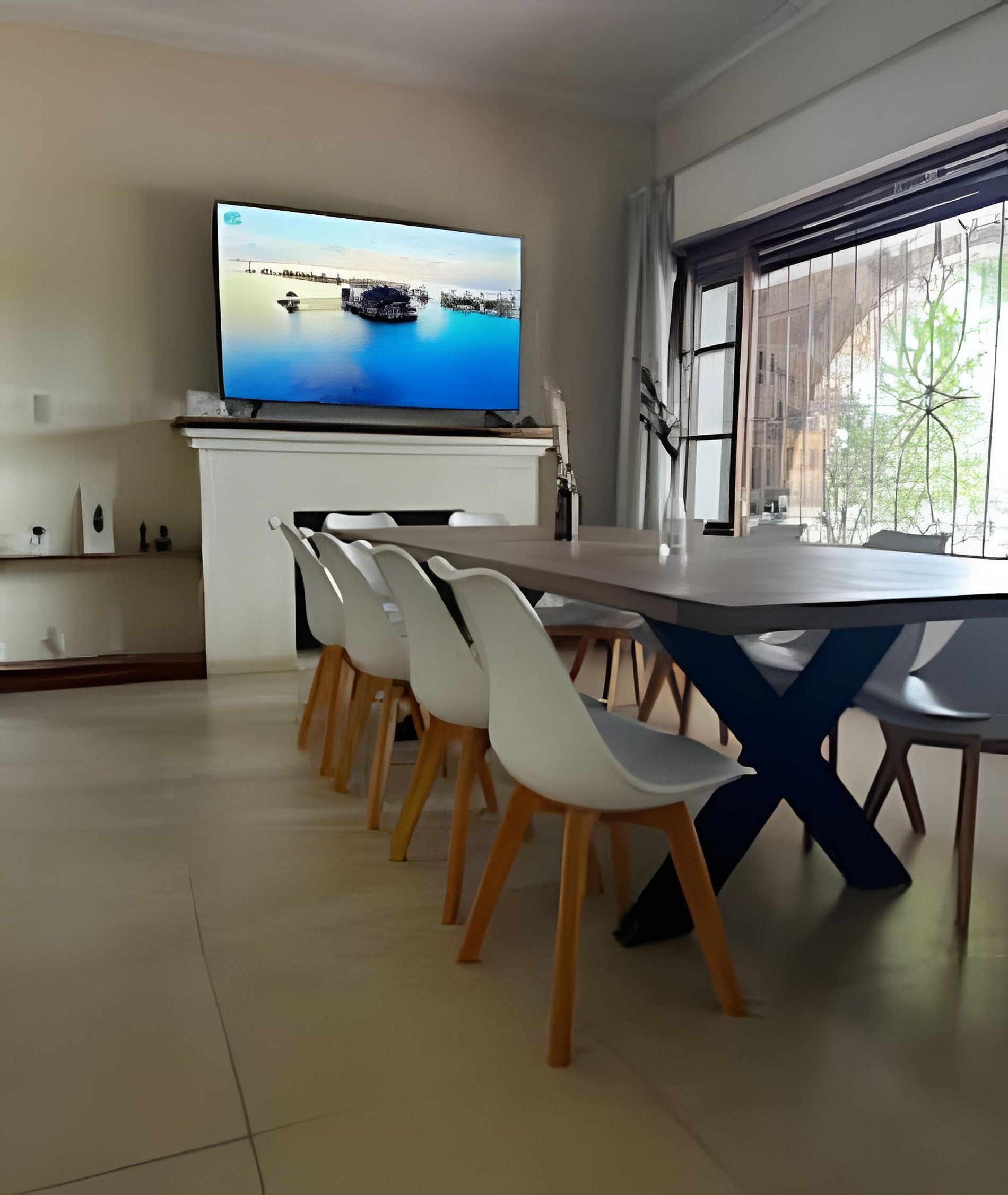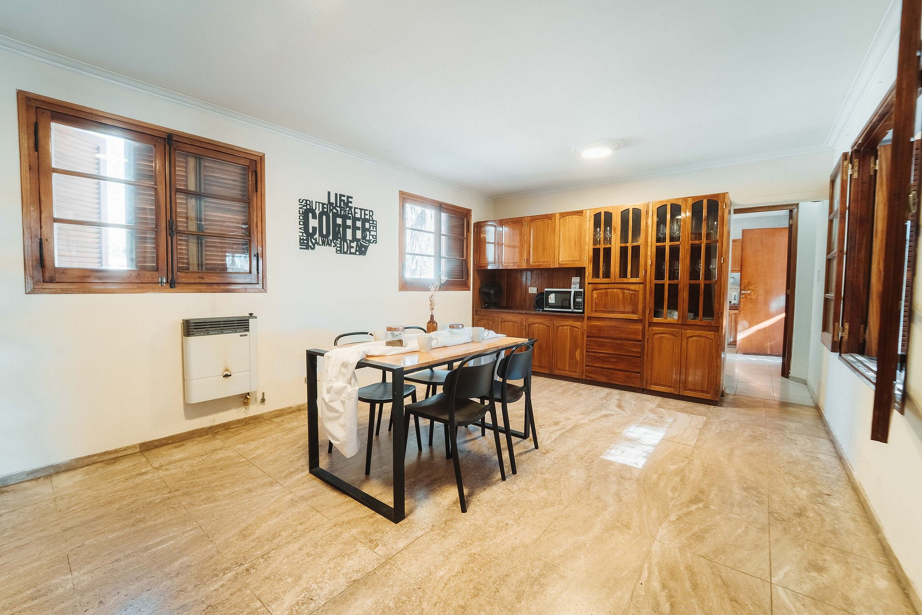 La casa ofrece cocina compartida, comedor amplio y una TV de 75". Se puede alquilar por habitación o completa para grupos.