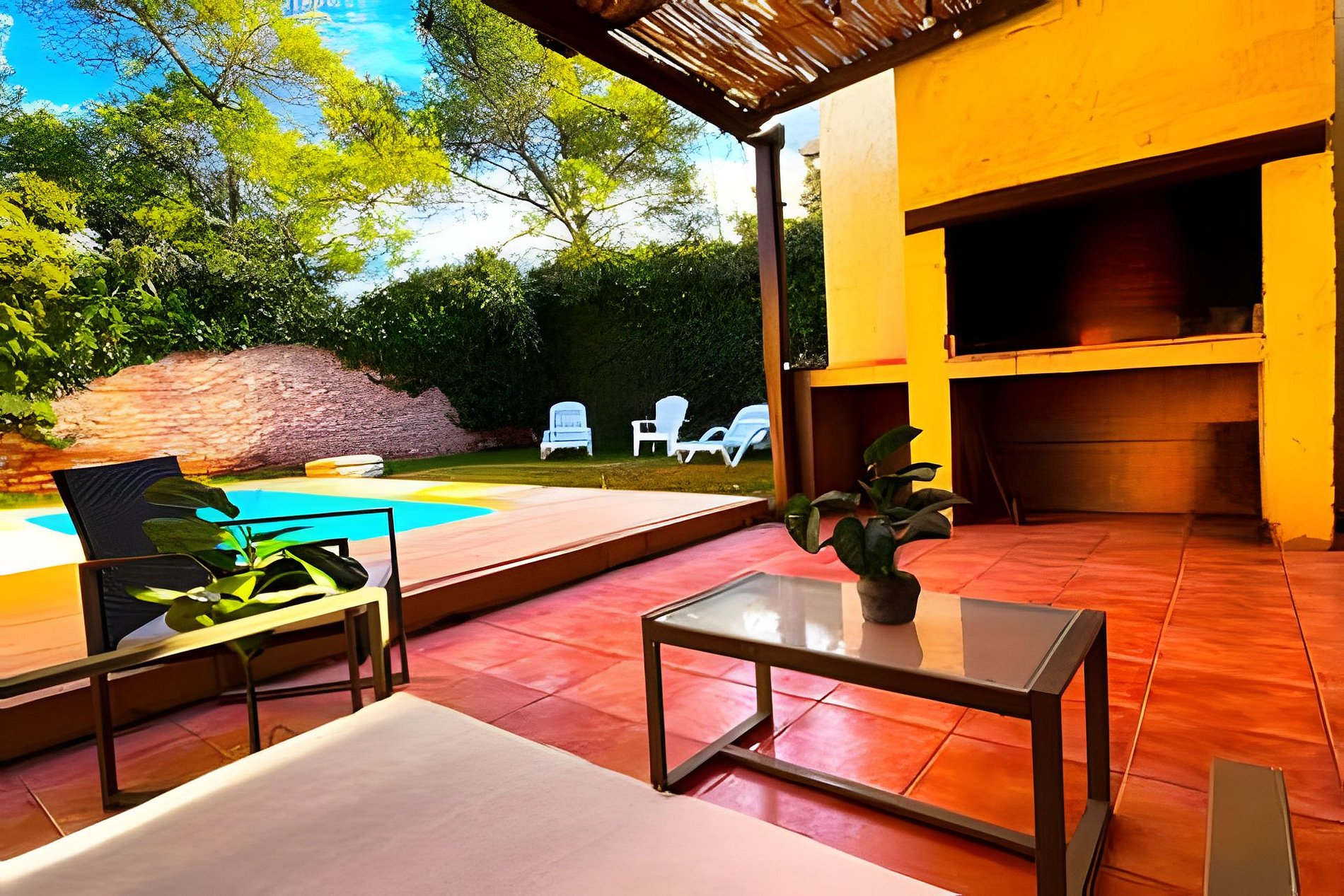 Tiene capacidad para 8 personas, con 2 habitaciones, 1 baño con bañadera, cocina equipada, aire acondicionado, calefacción, Smart TV y WiFi. El espacio exterior invita a disfrutar: pileta, jardín, parrilla y muebles de exterior para comer al aire libre o simplemente relajarse al sol.
