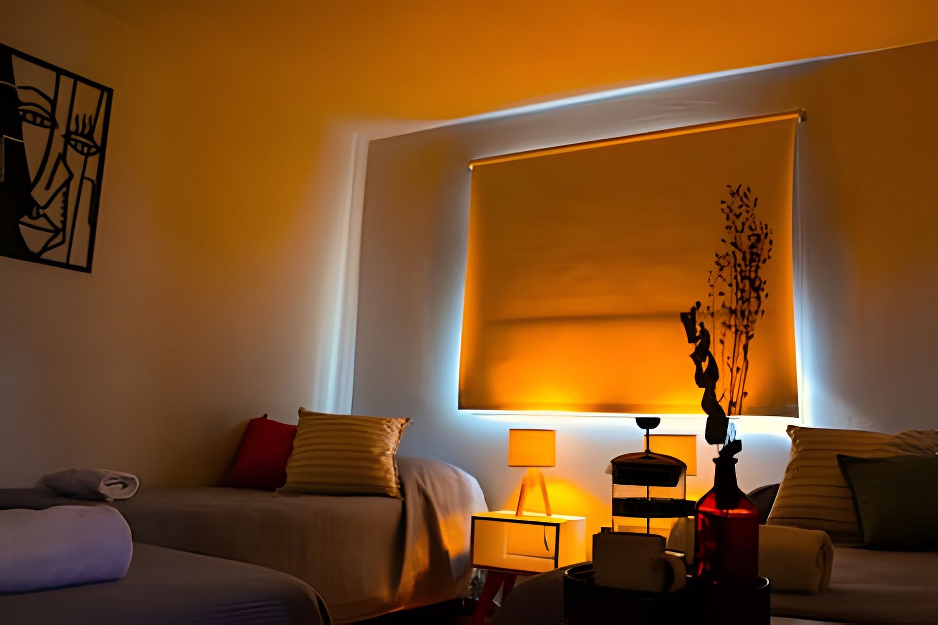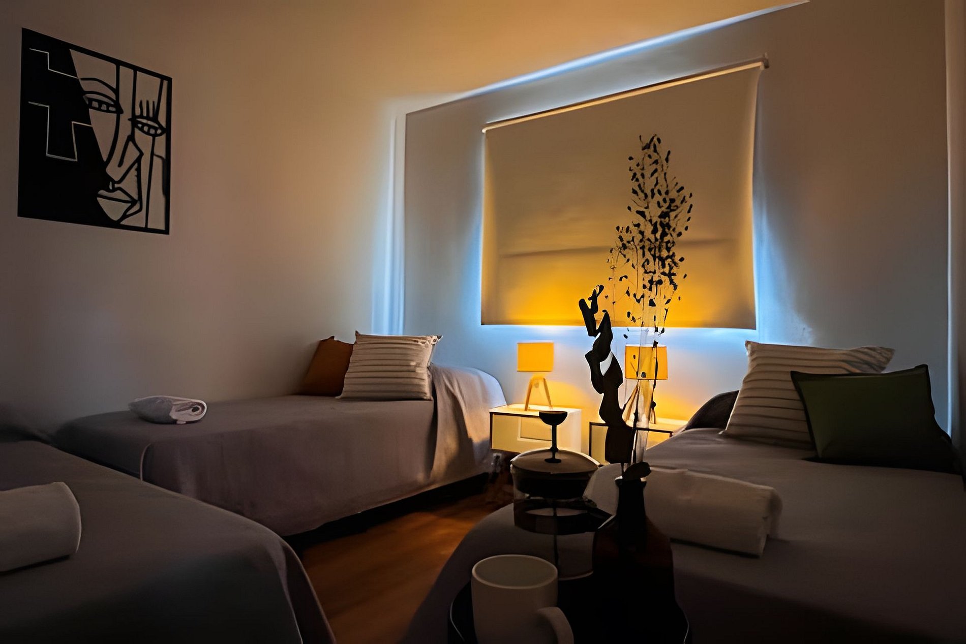 El diseño es minimalista, luminoso y funcional, con detalles cuidados para que te sientas como en casa. Se incluye desayuno seco de cortesía: café, té, azúcar, edulcorante, aceite y sal. Además, cuenta con estacionamiento privado y check-in autónomo 24 h.