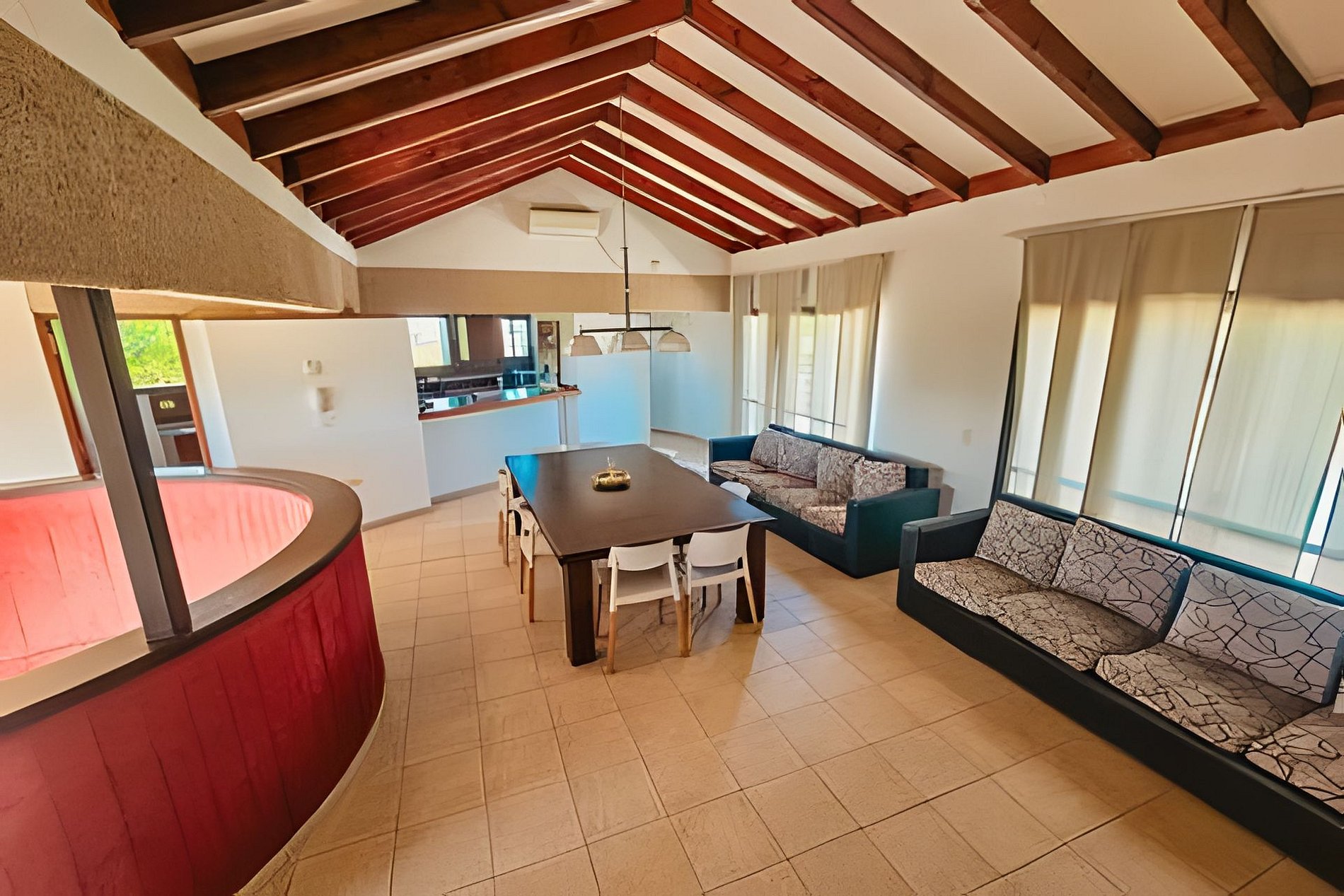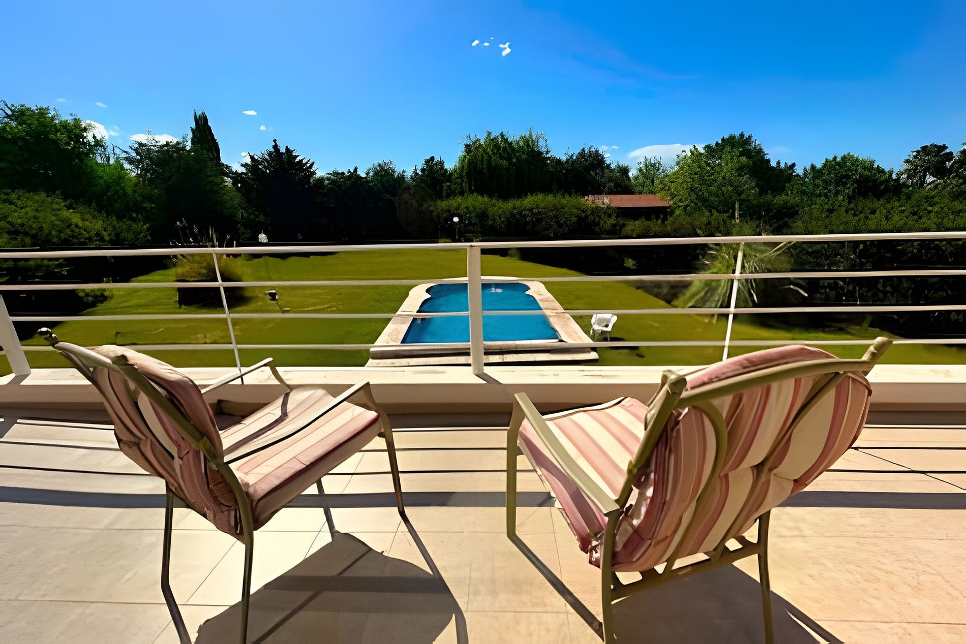 El exterior es protagonista: pileta, jacuzzi, patio de 1200 m², parrilla, quincho cerrado con mesa grande, muebles en balcón y galería, y un amplio solárium para relajarse al sol. Se respira aire puro, espacio y tranquilidad.